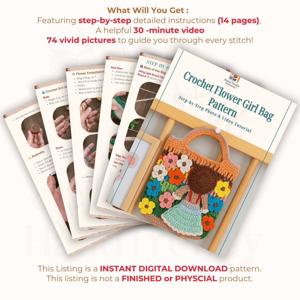 You’ll instantly get a 📄 downloadable PDF file with step-by-step crochet instructions. 🧺 No physical product will be shipped.