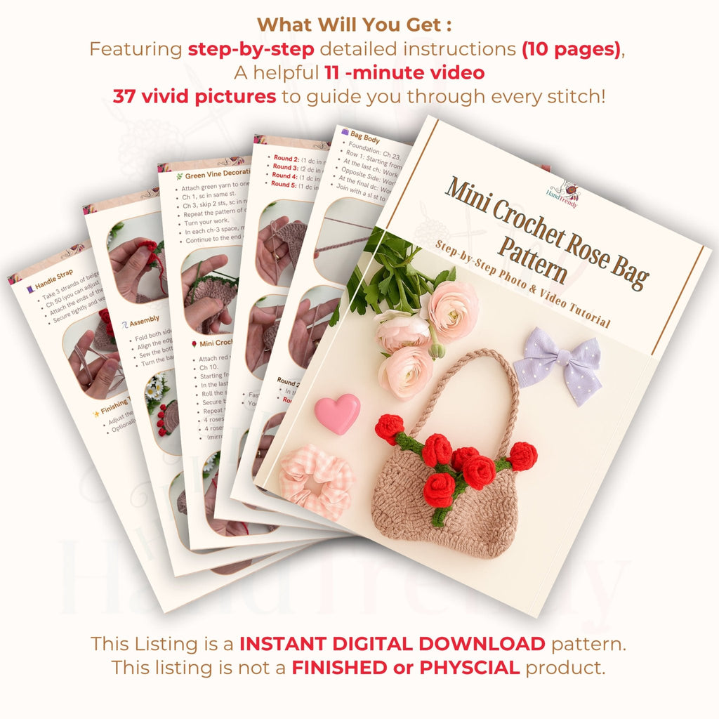 🌹👜 The pattern includes a detailed crochet tutorial with step-by-step photos and clear written instructions, making it easy to follow even for beginners. With this crochet pdf, you can create a gorgeous crochet bag that’s ideal as a crochet purse keychain, holiday crochet decoration, or thoughtful crochet gift.