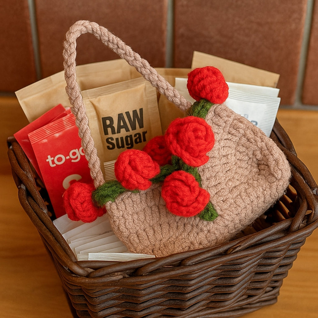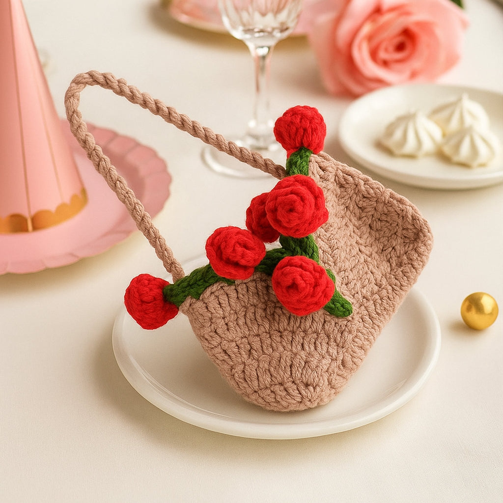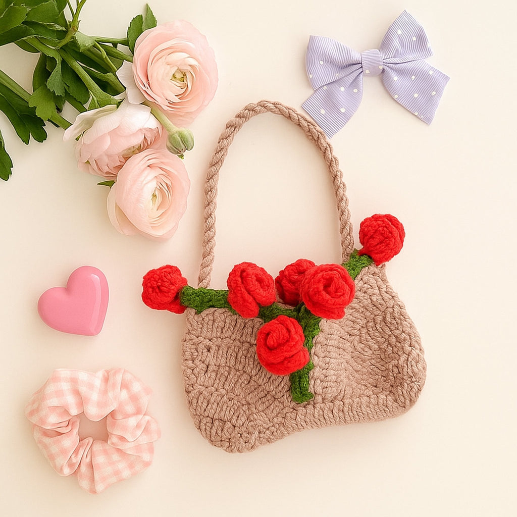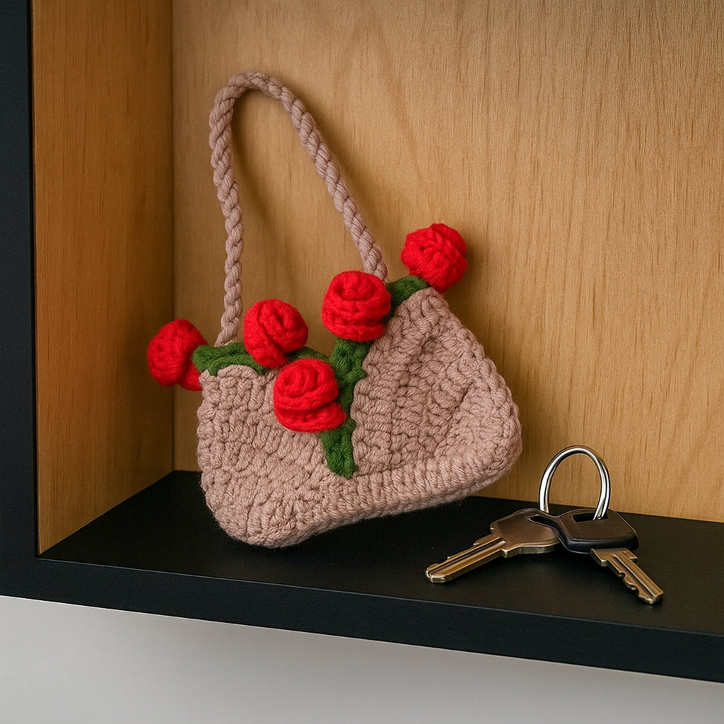 Create a beautiful and romantic Mini Crochet Rose Bag Pattern that blends floral charm with miniature elegance! This tiny crochet handbag is designed as a decorative crochet ornament, featuring delicate 3D crochet roses and a soft textured base. Perfect for those who adore handmade crochet, crochet decor, and elegant miniature crafts.