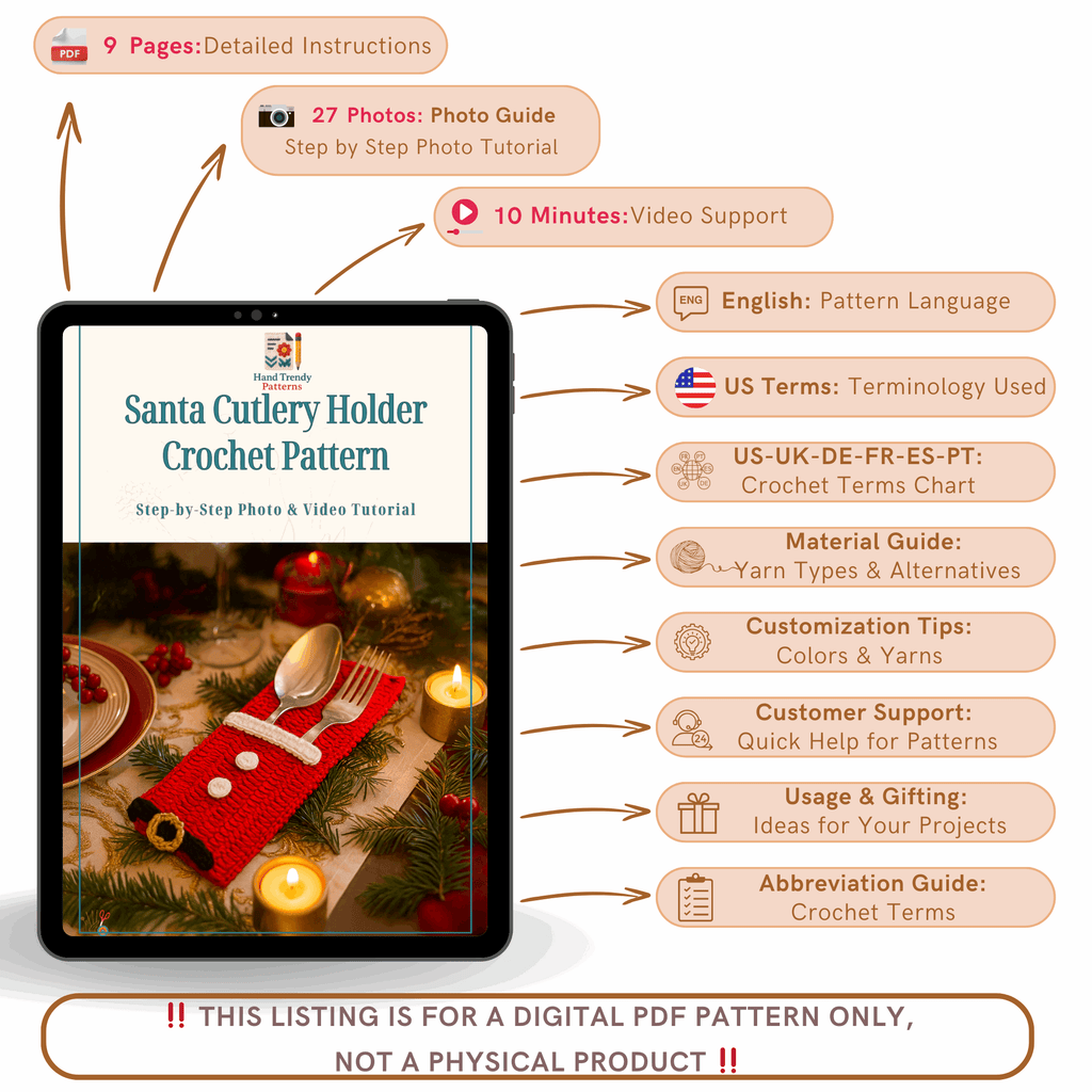 Bring festive cheer to your holiday table with this adorable Santa cutlery holder! This easy-to-follow crochet pattern PDF is perfect for adding a handmade touch to your Christmas dinner setup. 🧶🎄