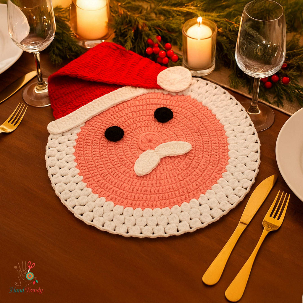 This Santa placemat crochet project is not only decorative but also functional. Keep your table safe while showcasing your love for the holidays and handmade crafts. Whether you're hosting a cozy Christmas meal or giving it as a gift, this placemat is sure to spread smiles.