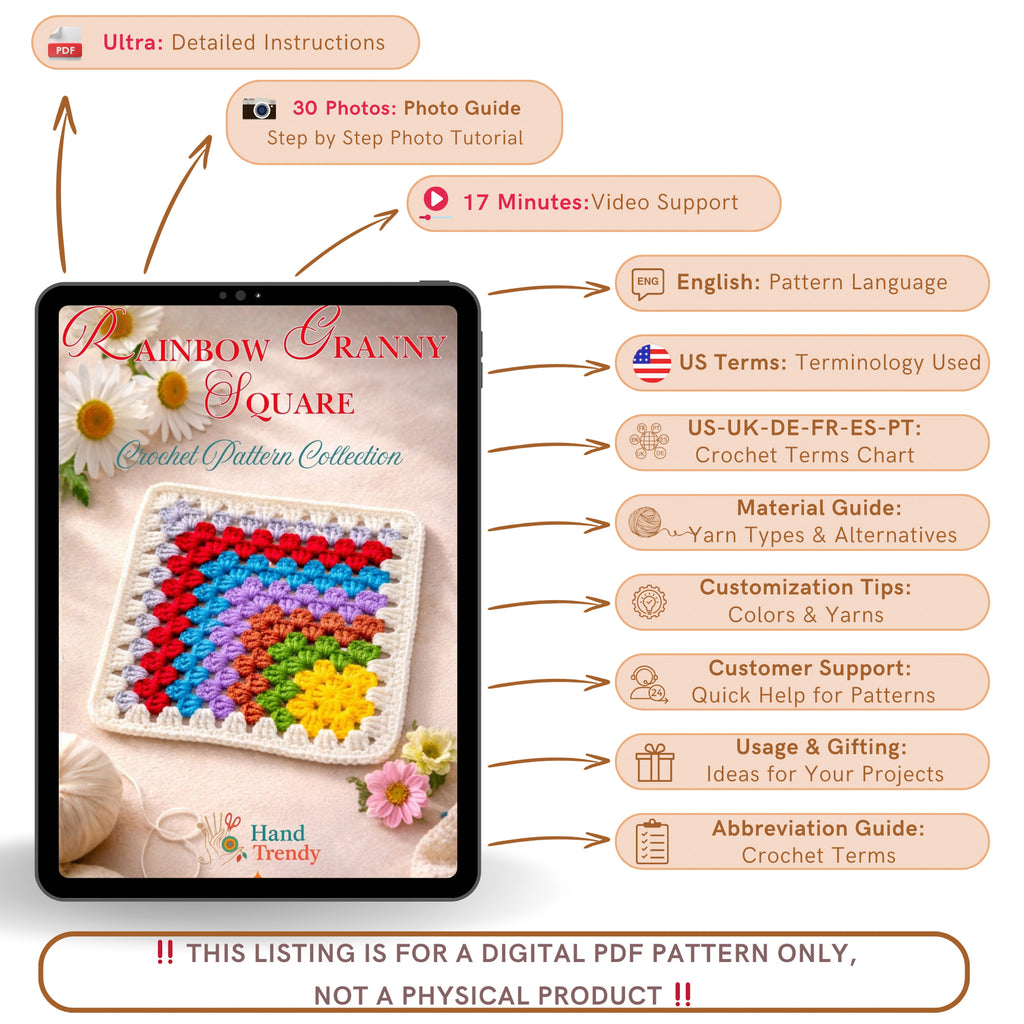 ⚠️ Your purchase of this pattern constitutes your agreement that only personal use is allowed. Reselling or distributing the pattern in any form is prohibited. You are welcome to sell products made from this pattern but please credit @HandTrendy as the designer.