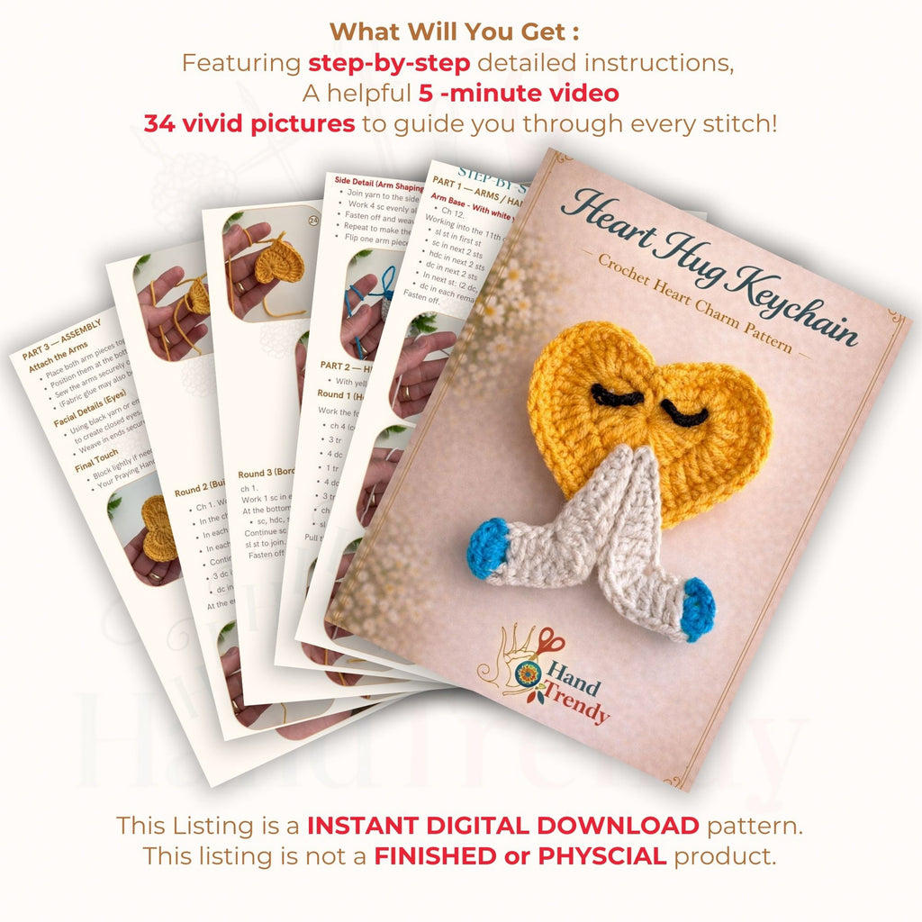 Crochet Heart Keychain Pattern is a fun and charming digital PDF design that helps you create a cute heart-shaped character keychain with folded hands and expressive facial details. This pattern is ideal for makers who enjoy small crochet accessories that can be used as a keyring, bag charm, or handmade gift item.