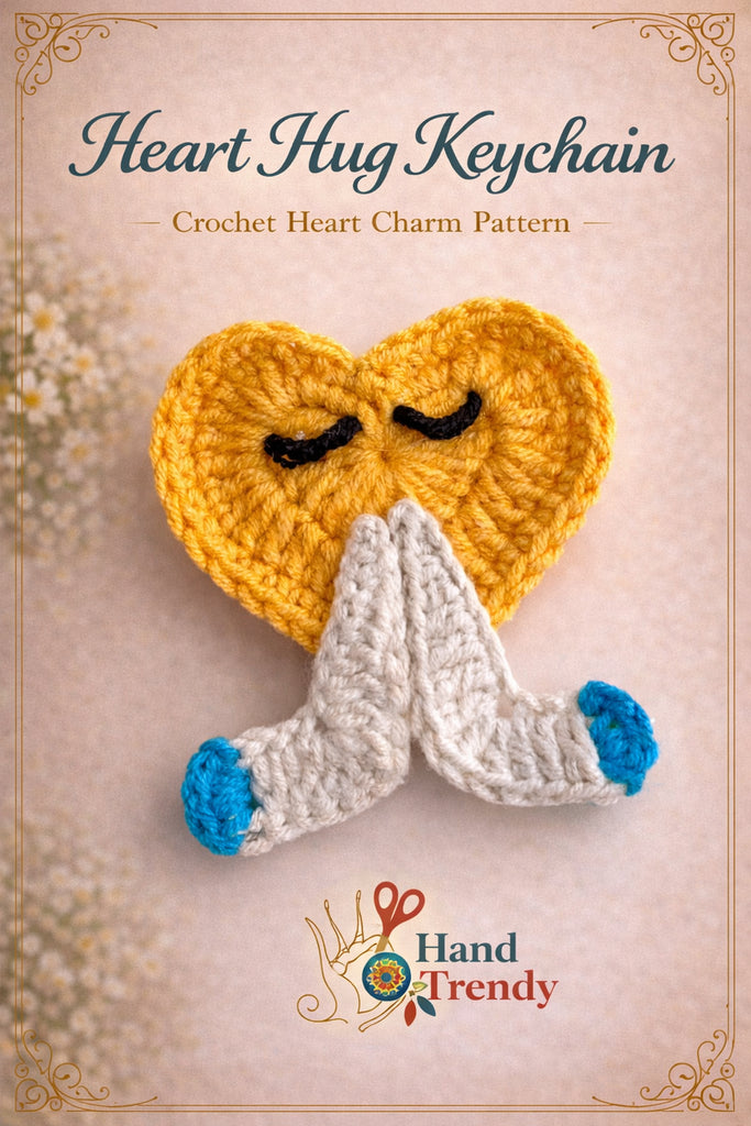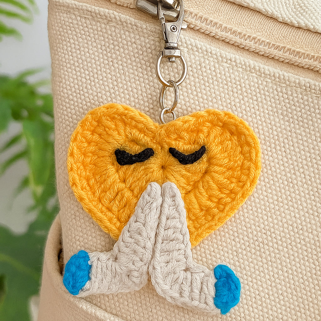 Tags included naturally: crochet heart keychain, heart keychain pattern, crochet keychain pdf, cute heart charm, heart bag charm, character crochet, crochet love keychain, crochet gift idea, folded hands crochet, kawaii crochet charm, crochet keyring pattern, heart crochet accessory, pdf crochet pattern.