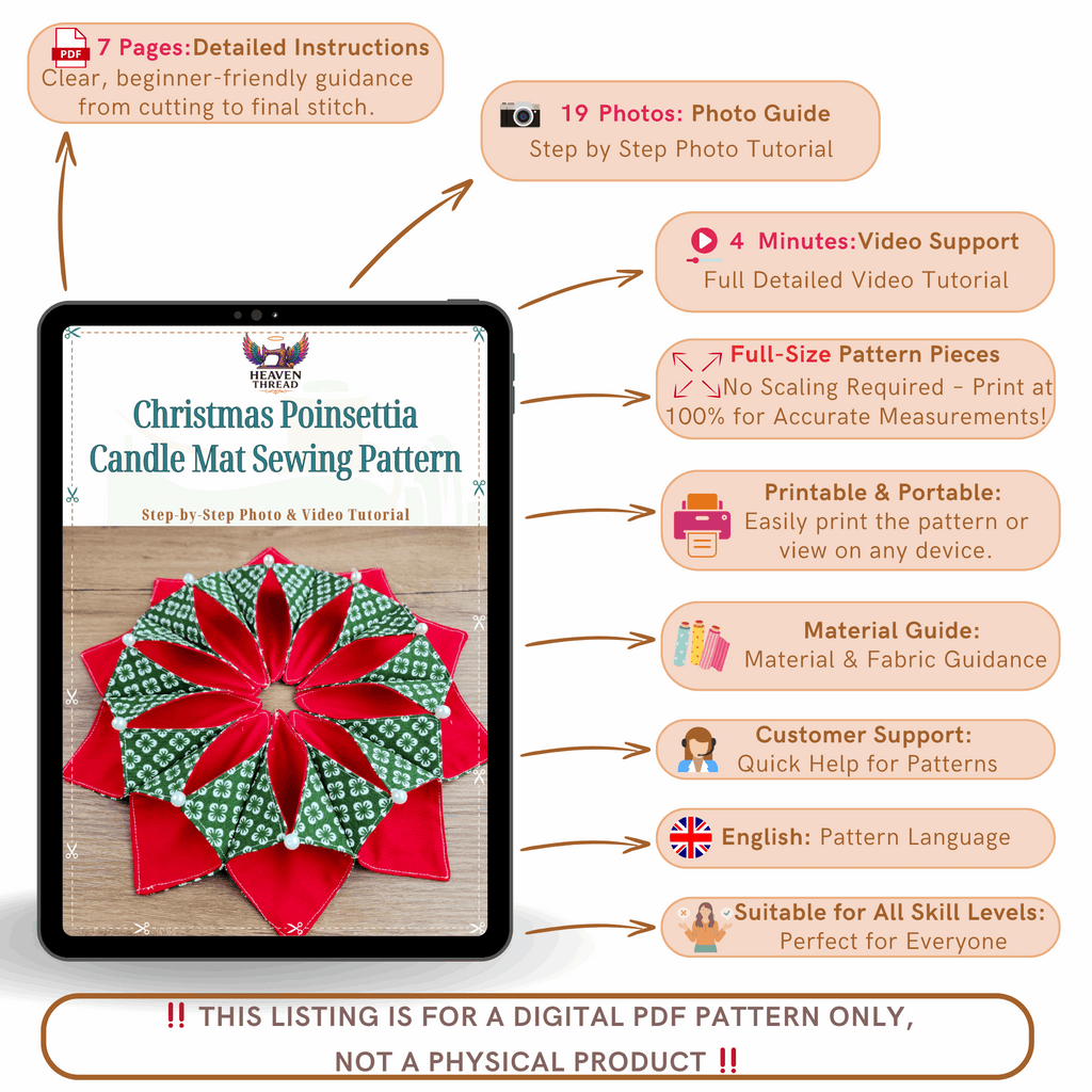 Add a festive handmade touch to your holiday table with this Christmas Poinsettia Candle Mat Sewing Pattern! ๐โจ