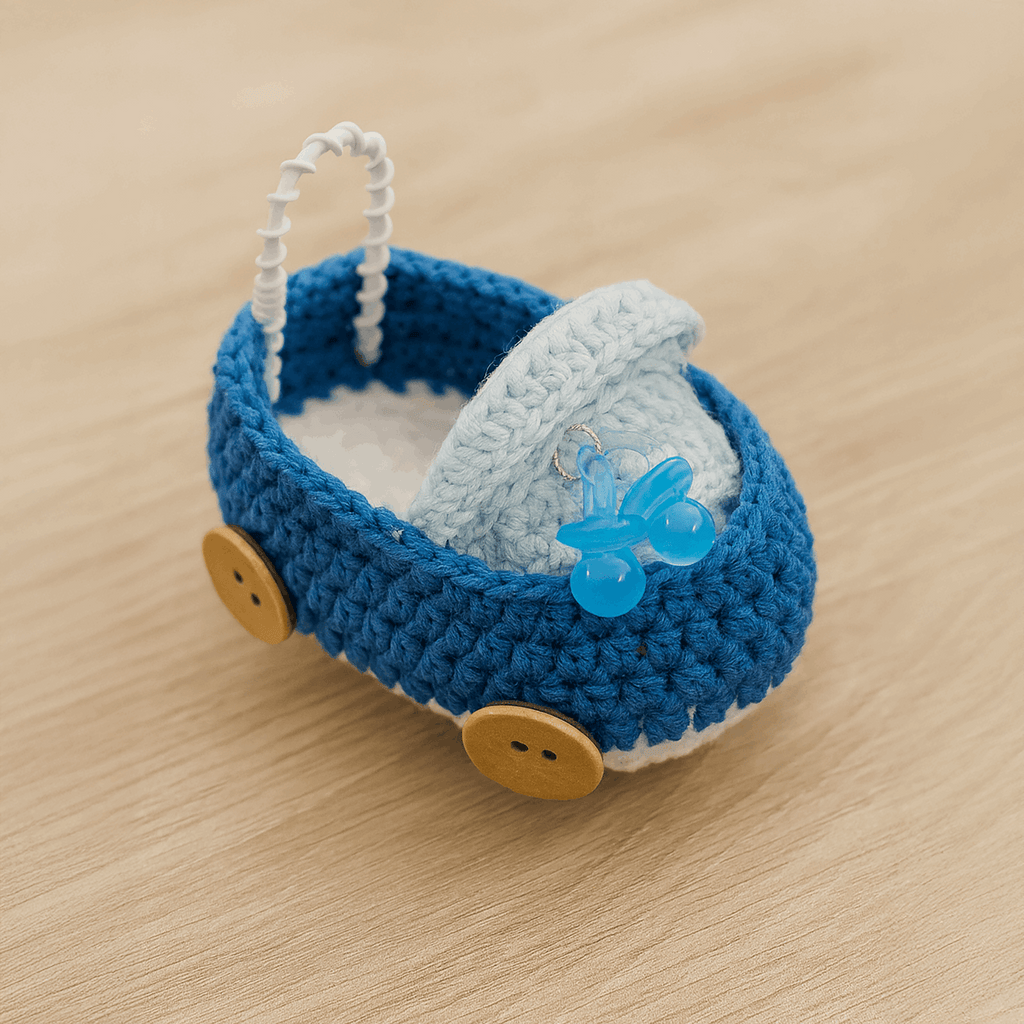 Celebrate your little one’s arrival with this adorable crochet baby carriage pattern! Designed as a sweet baby boy stroller with cute details like buttons for wheels and a mini pacifier, this PDF pattern is perfect for baby showers, nursery decorations, or handmade gift favors. Whether you’re decorating a party table or preparing personalized keepsakes, this project brings joy to every stitch 💙👶
