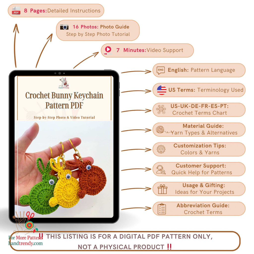 Crochet bunny keychain pattern is a fun and easy PDF crochet pattern for those who love creating cute accessories. With this bunny keyring and amigurumi bunny design, you can craft your own adorable rabbit keychain for everyday use or gift giving.