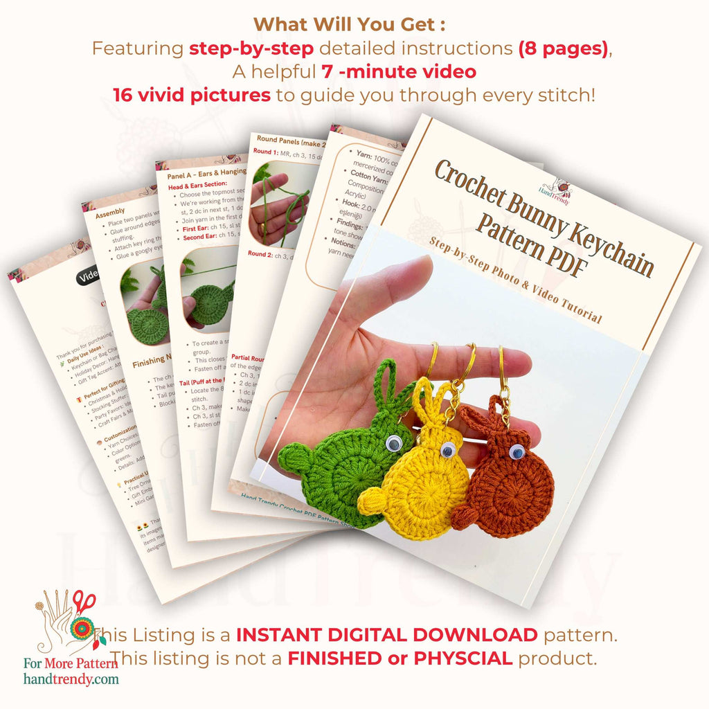 Ideal for easter bunny projects, this keychain crochet tutorial guides you through simple steps with clear visuals. The instructions are straightforward, making it a relaxing weekend DIY keychain activity.