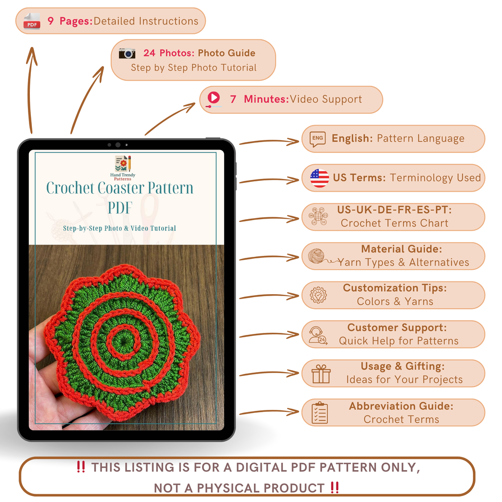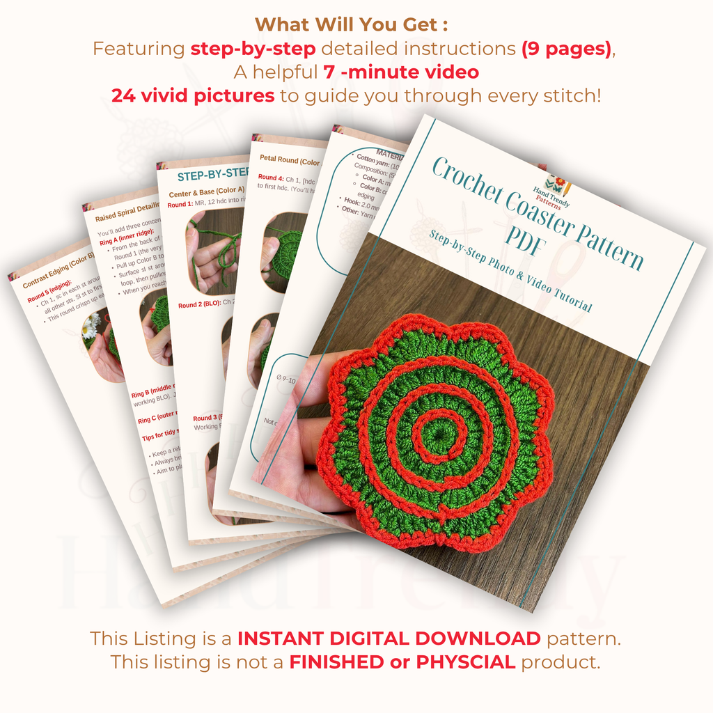 • Format: Printable and easy-to-read PDF file This pattern is ideal for crochet lovers who enjoy making crochet home decor, crochet mug mats, and DIY crochet projects.