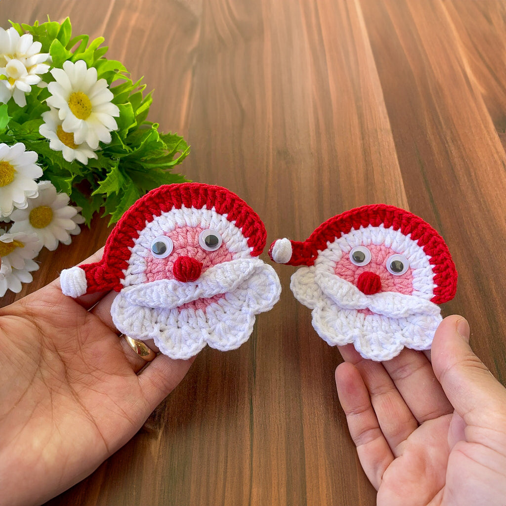 Crochet Santa Claus Face Applique - Crochet Xmas Tree Decor - Beginner-Friendly Crochet Santa Claus Pattern